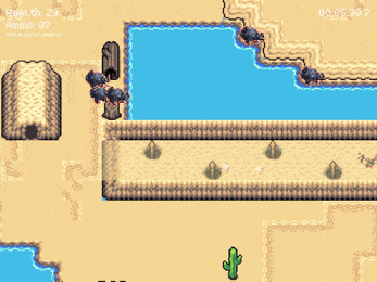 A shoot'em up set in a desert where you need to fight off the continuously renewed threat of wild animals disagreeing with your cutting edge desert farming methods. Survive for 7 minutes or your lonely existence in the desert comes to a raccoony end.
